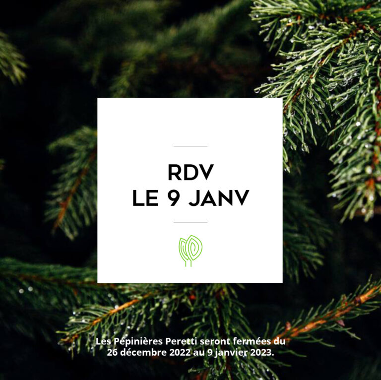 Les Pépinières Peretti sont ouvertes le 24 décembre ! Nous fermerons à partir du 26 décembre jusqu’au lundi 9 janvier 2023 ! Passez d’excellentes fêtes de fin d’année et prenez bien soin de vous et de vos proches !